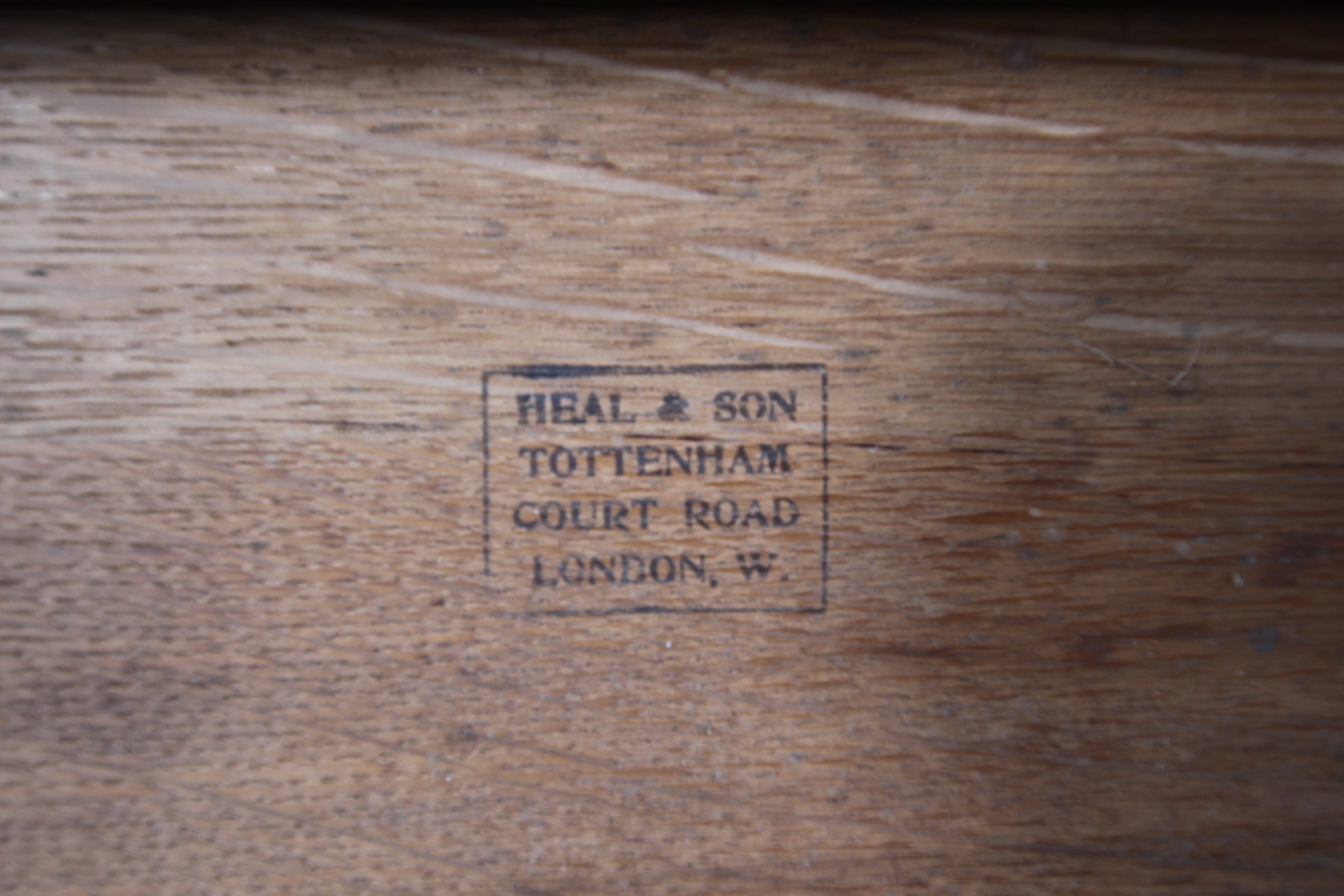 Dating from around 1890, this is an early piece of Heals solid antique oak furniture, a large scale dresser that splits into three sections, the architectural lift off cornice, the open rack with panelled door cupboards to each side, and then the dresser base that stands on a stretchered base with turned legs and having two drawers over two cupboards. In superb condition throughout, stamped twice with the makers label and by the maker into a drawer. Complete with all the original iron work and all a very good original colour. Only a handful of these dressers where ever made, this is one of Ambrose Heals earliest designs.