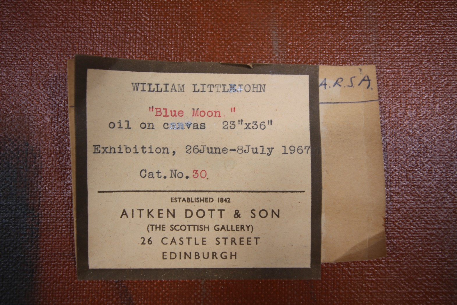 A superb original abstract oil painting on canvas by the highly distinguished Scottish artist William Hunter Littlejohn RSA, (1929-2006), titled Blue Moon and dated 1967, paper gallery label on the back shows all the information regarding this piece and the painting is mounted in the original frame. In excellent, clean condition and signed. Littlejohn was an interesting artist, a member of the Scottish Royal Academy, his art works are held in private and public collections, including the late HM The Queen.
