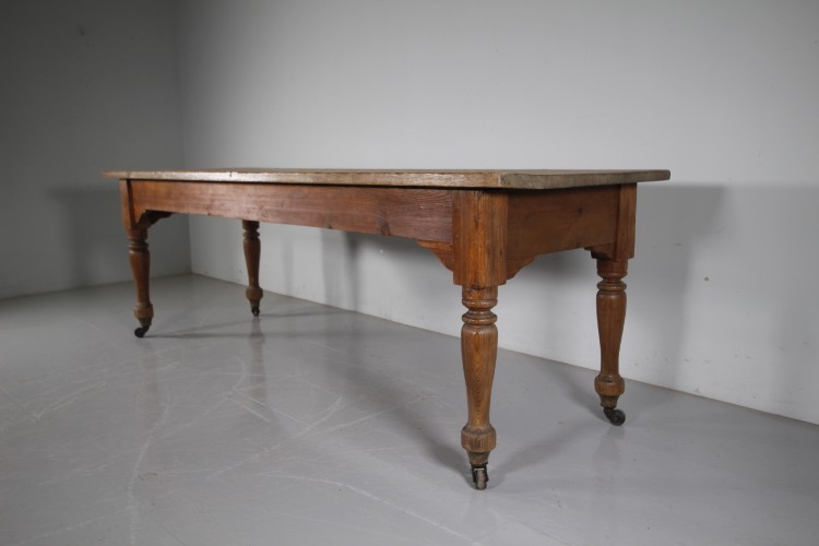 Large English 19th Century Antique Pine Farmhouse Dining Table