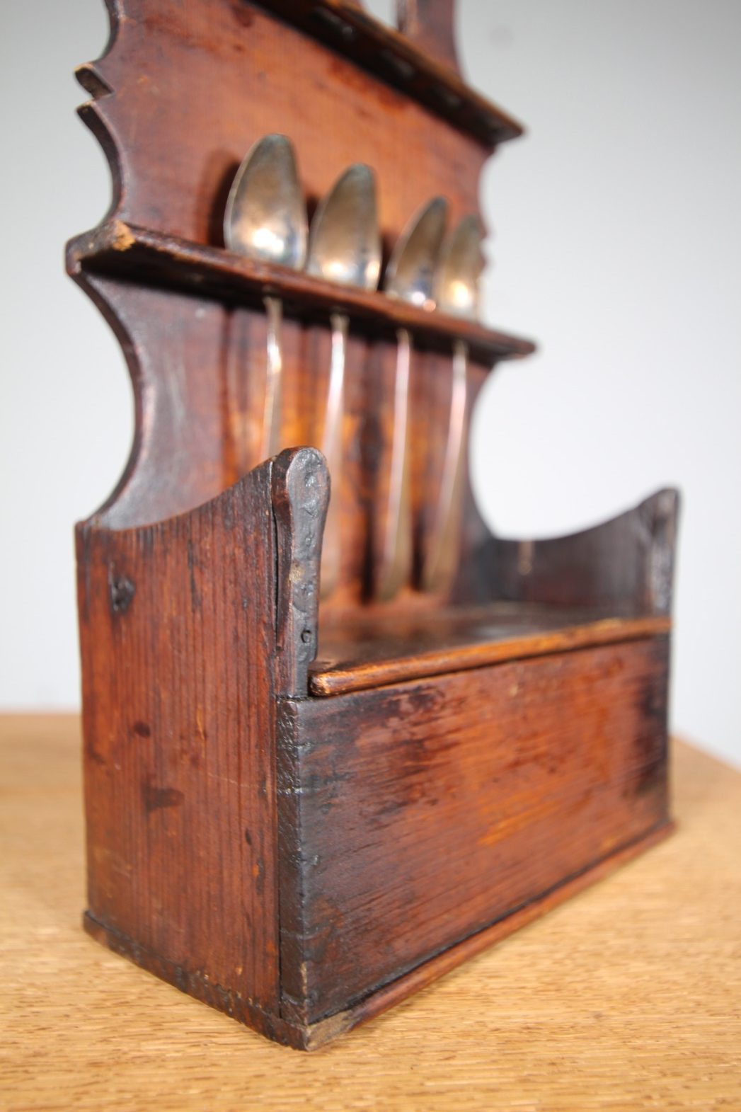 Lovely Original Antique Pine Spoon Rack & Candle Box