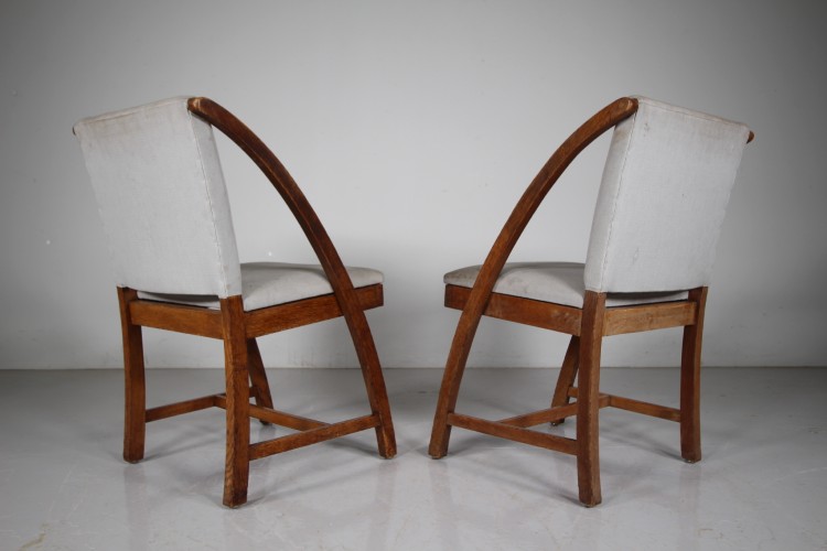 Rare Set of Eight Heals 1930’s Oak Dining Chairs – Labelled